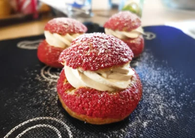 2. CHOUX AU CRAQUELIN (PTYŚ Z KRUSZONKĄ) Z KREMEM WANILIA-TONKA-KAWA 12 zł