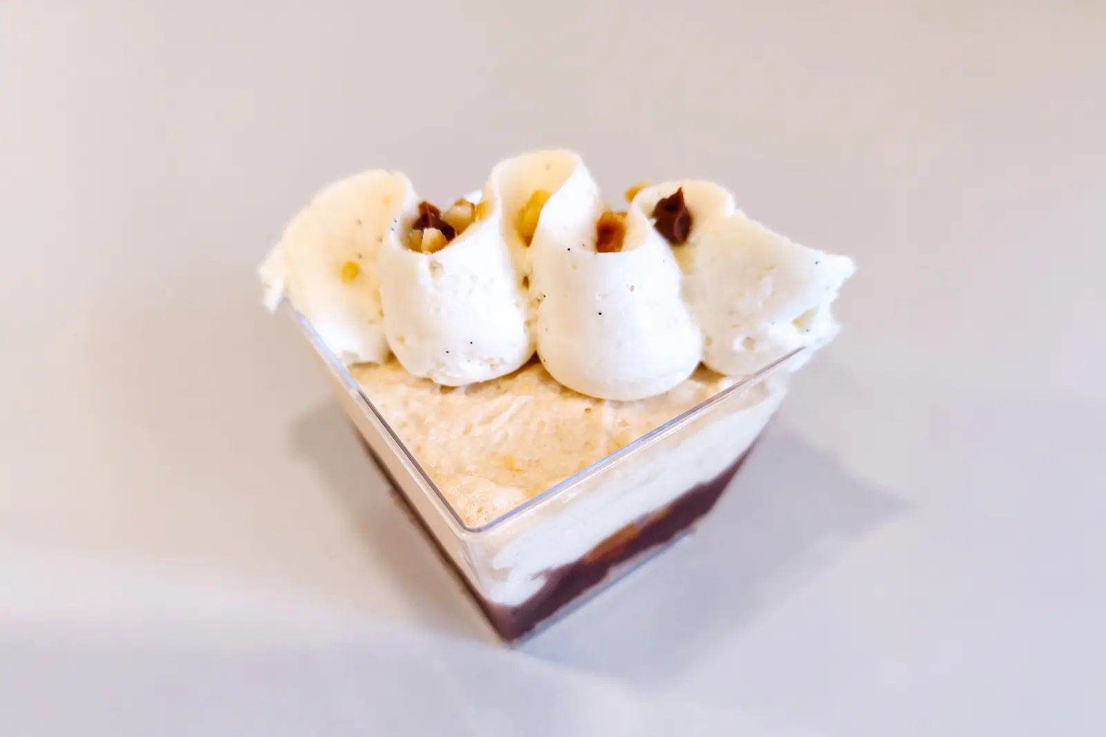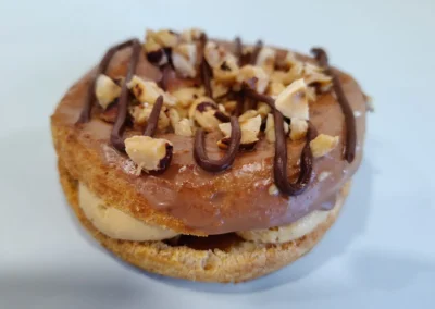 warstwa ciasteczkowa, ganache czekoladowy, karmel z orzeszkami ziemnymi oraz krem waniliowy chantilly